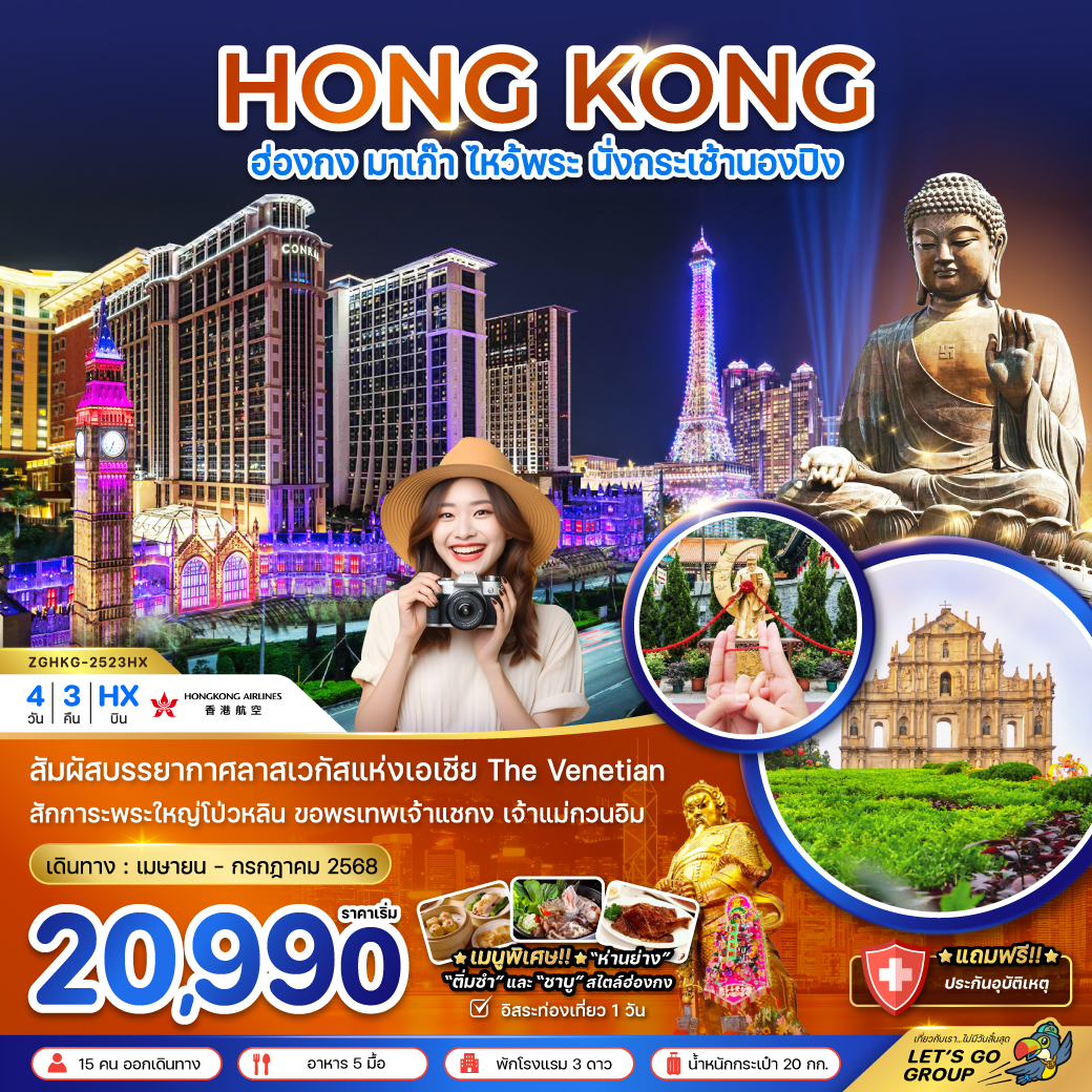 เที่ยวฮ่องกง ฮ่องกง – (นั่งรถรางพีคแทรม) สู่ยอดเขาวิคตอเรียพีค - อ่าวรีพัลส์เบย์ - เช็คอินอ่าววิคตอเรีย กระเช้านองปิง & พระใหญ่เทียนถาน – ซิตี้เกท เอาท์เลต วัดเจ้าแม่ทับทิมทินหัว - วัดกวนไท – วัดเจ้าแม่กวนอิมฮองฮำ – วัดหวังต้าเซียน - ศูนย์รวมฮวงจุ้ยกังหันนำโชค – วัดแชกงหมิว - ฮ่องกง