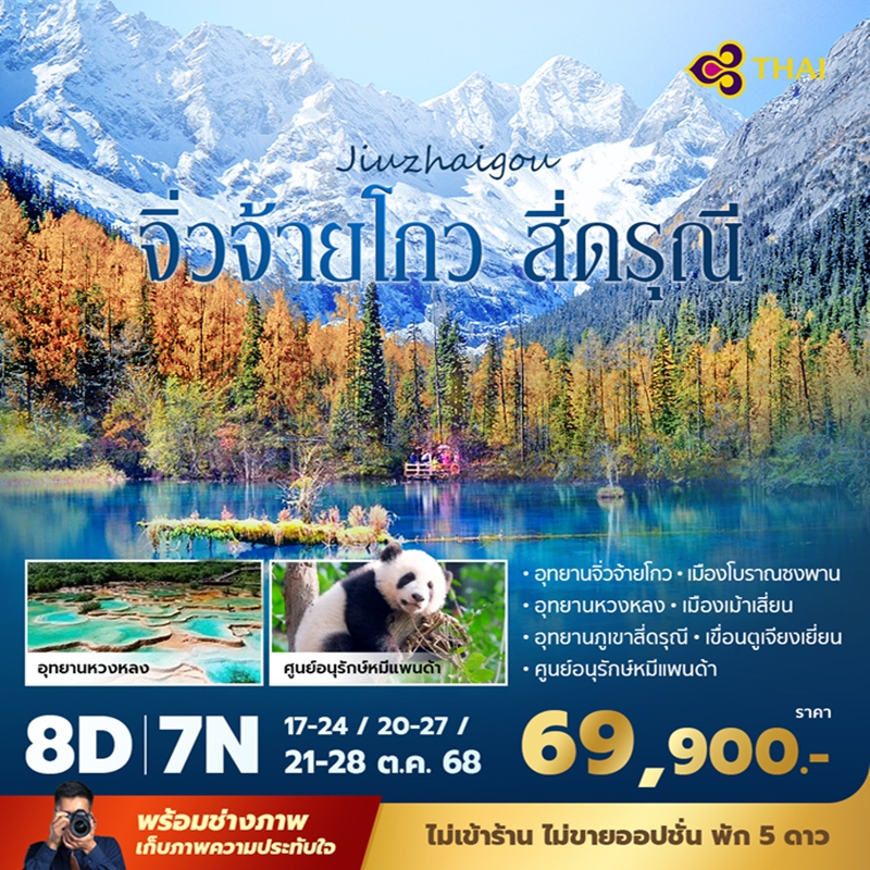 เที่ยวจีน จิ่วไจ้โกว ทะเลสาบสีฟ้า ท้าทายใบไม้สีส้ม สี่ดรุณี เเอลป์เเห่งตะวันออก สวยฉ่ำ เที่ยวเฉิงตู ดุหมีเเพนด้าปีนตึก IFS